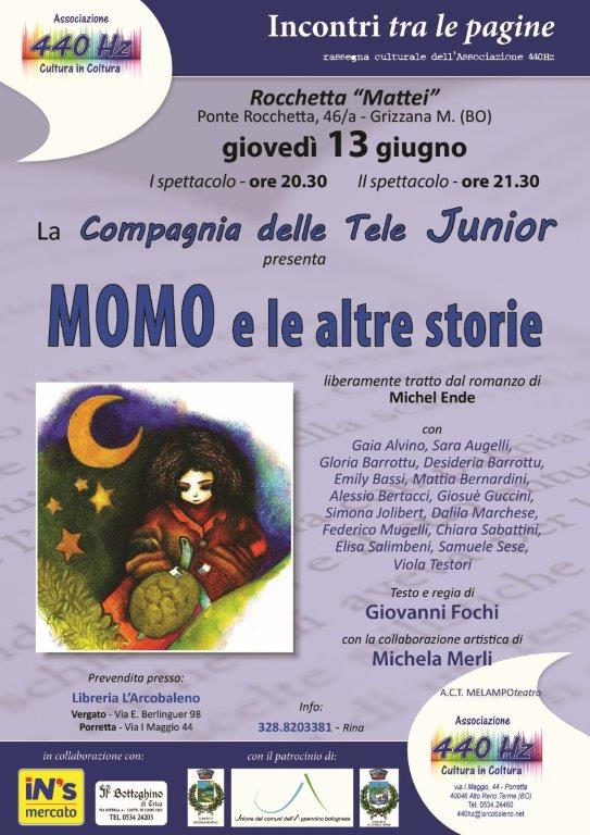 La Compagnia delle Tele presenta Momo e le altre storie liberamente tratto dal romanzo di Michael Ende Giovedì 13 giugno 2019 alla Rocchetta Mattei ore 20,30 primo spettacolo ore 21,30 secondo spettacolo
